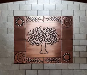 For those who prefer more unconventional solutions, we recommend choosing tree of life copper tiles for the backsplash. It will perfectly protect the wall from dirt while attracting the attention of every guest through its impeccable presence. It looks great in any decorating style, but without a doubt the best in a kitchen preserved in a rustic style.