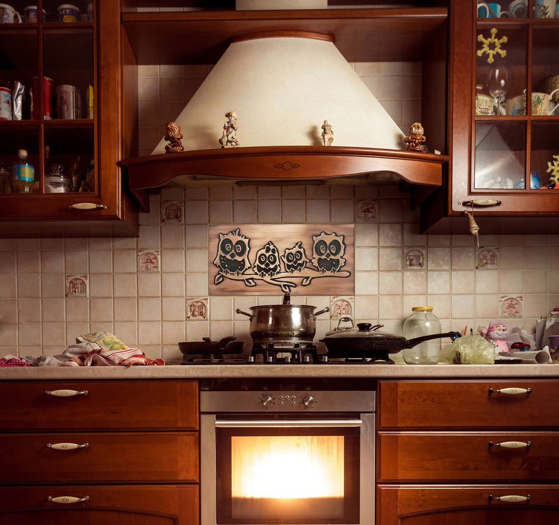 ornamental backsplash made out of copper tiles – these are only one of the ideas to add a