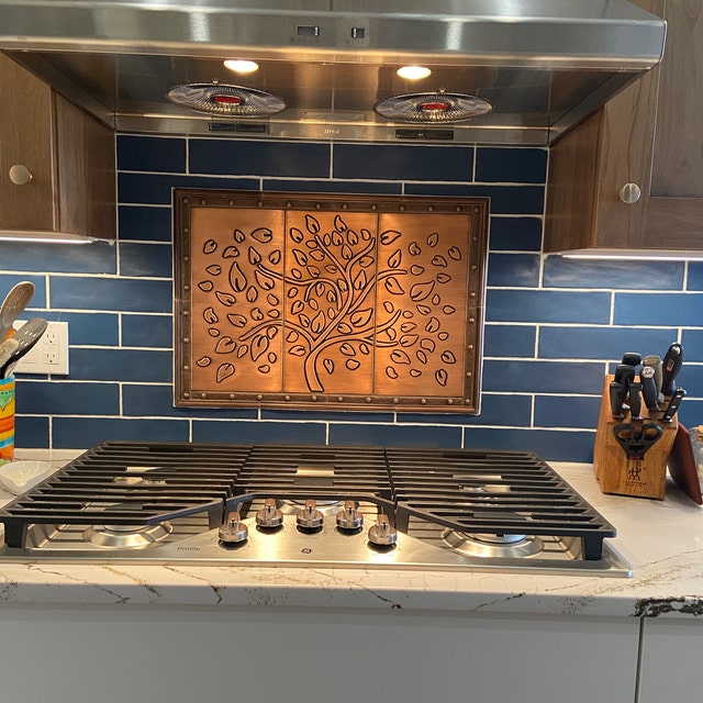 Patina copper backsplash has many devoted fans due to the longevity of the material and its unusual surface look. Metal covered with patina has amazing color that connects deep blue, greens with white or black, creating a stunning collage of hues. It can add some unusual value to your home, so it is certainly worth to consider that option.