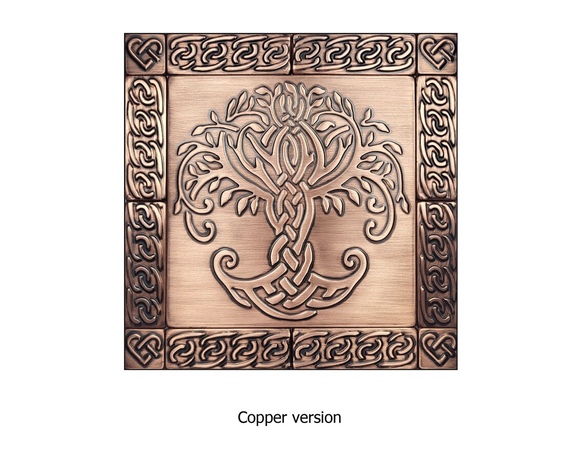 Celtic tree of life with hearts – Set of 13 handmade celtic tiles – 100% of Copper, Brass, Copper or Stainless Steel.