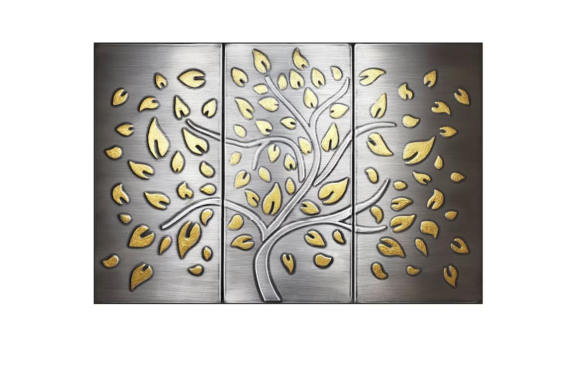 The tiles are made of 100% stainless steel and the leaves are covered with liquid brass !!